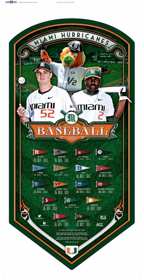 As we start counting down to the first pitch of the 2013 season, we are running some of the best posters from schools across the country. The team we feature today is the Miami Hurricanes who are coming off a 36-23 overall campaign and 16-14 mark in ACC play. You can check out the poster below. Future posters can be sent to me by clicking here.