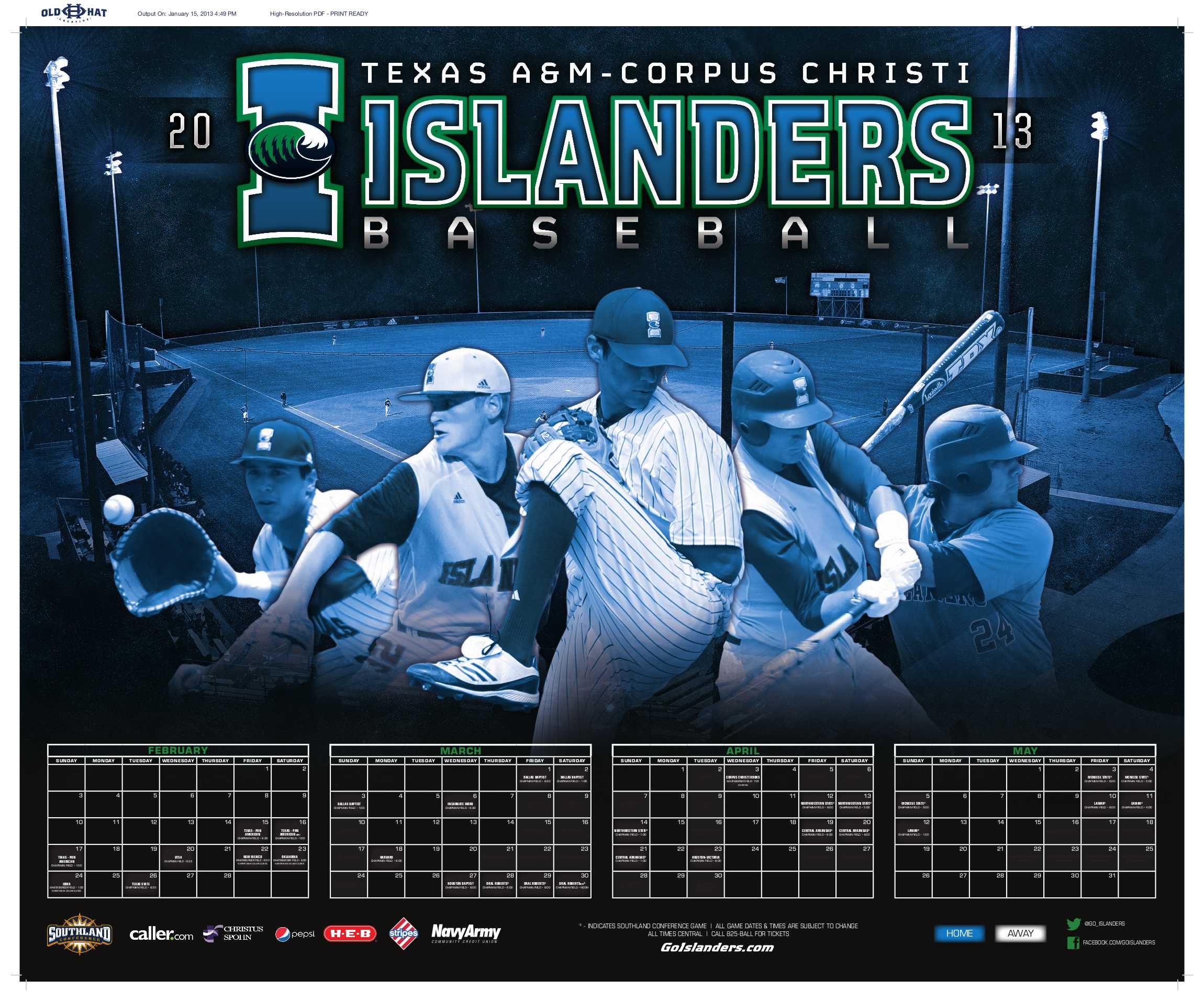 As we continue the days to the first pitch of the 2013 season, we are running some of the best posters from schools across the country. The team we feature today is the Texas A&M-Corpus Christi Islanders. They enter the season coming off a 2012 season which saw them go 24-33 and 14-19 in the Southland Conference. You can send future posters to us by clicking here.
