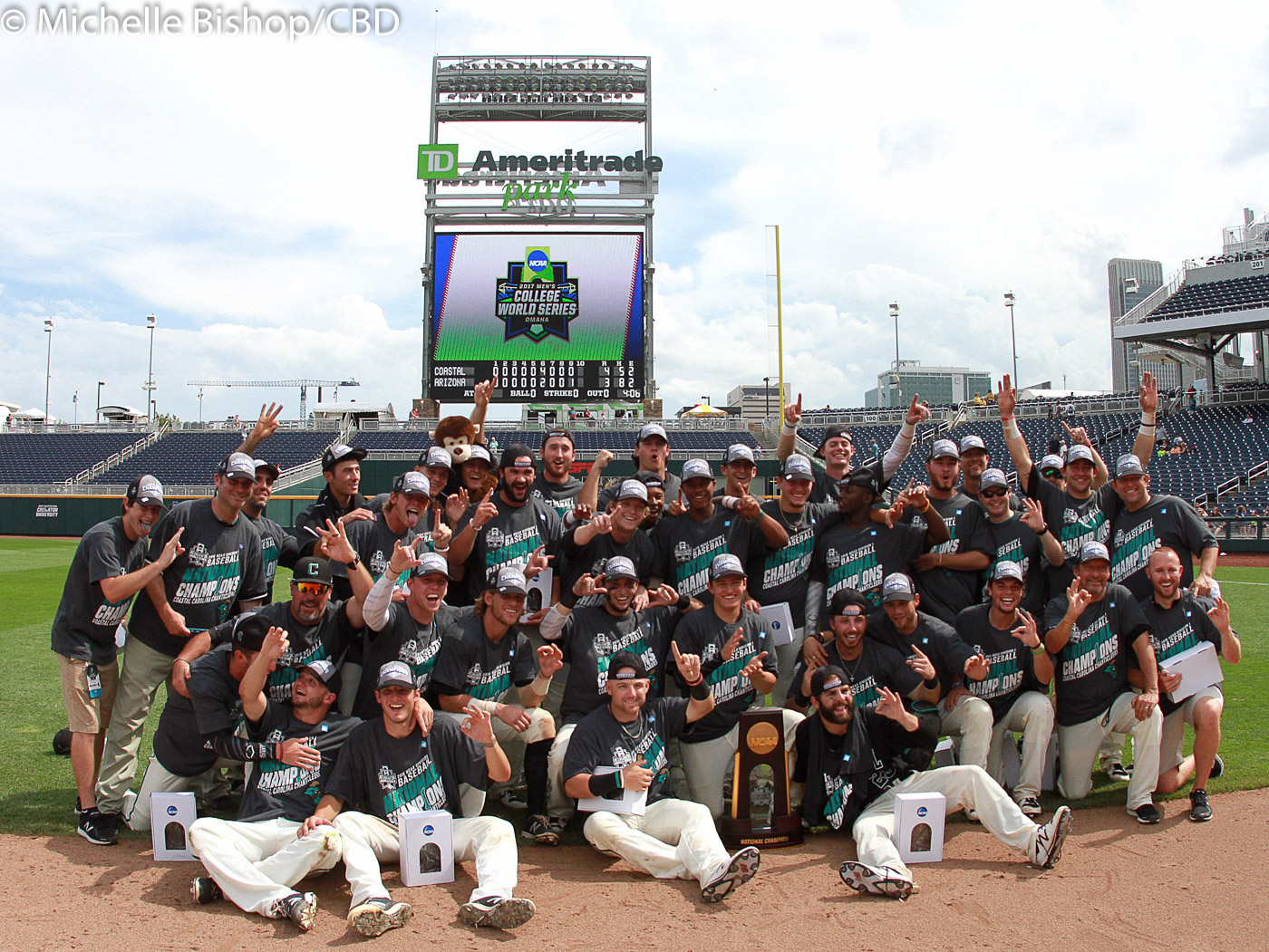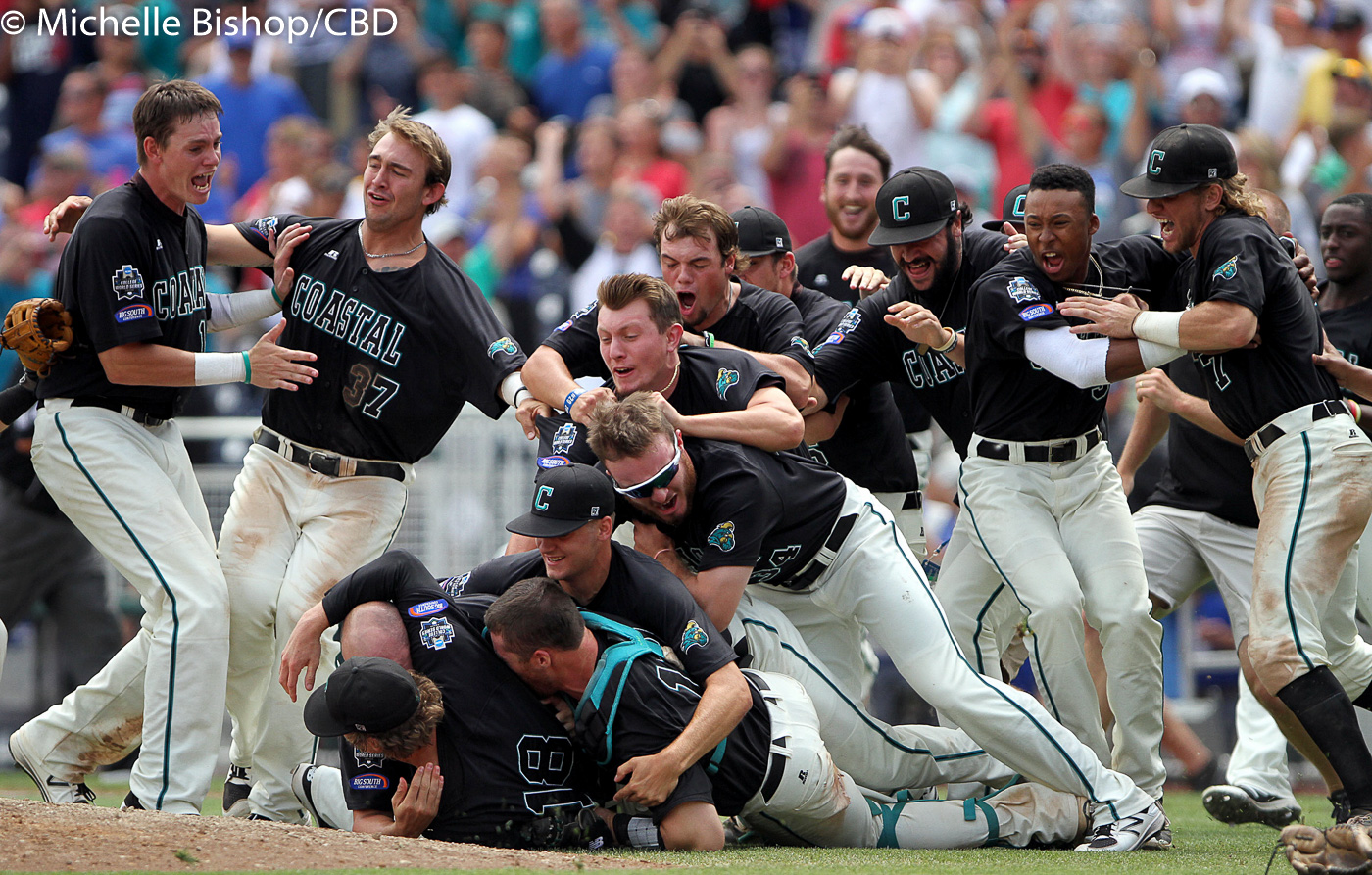 Coastal Carolina earned its first national championship after beating Arizona 4-3 in the third game of the College World Series finals at TD Ameritrade Park in Omaha, Neb. (Photo by Michelle Bishop)