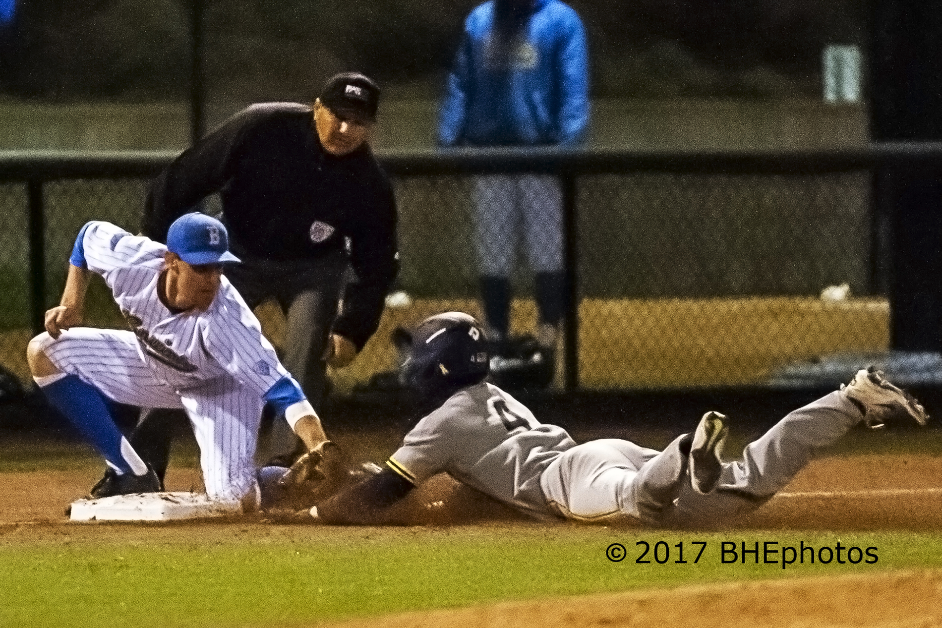 Brian Gadsby fields Michael Brdar’s bunt – Photo By David Cohen, BHEphotos