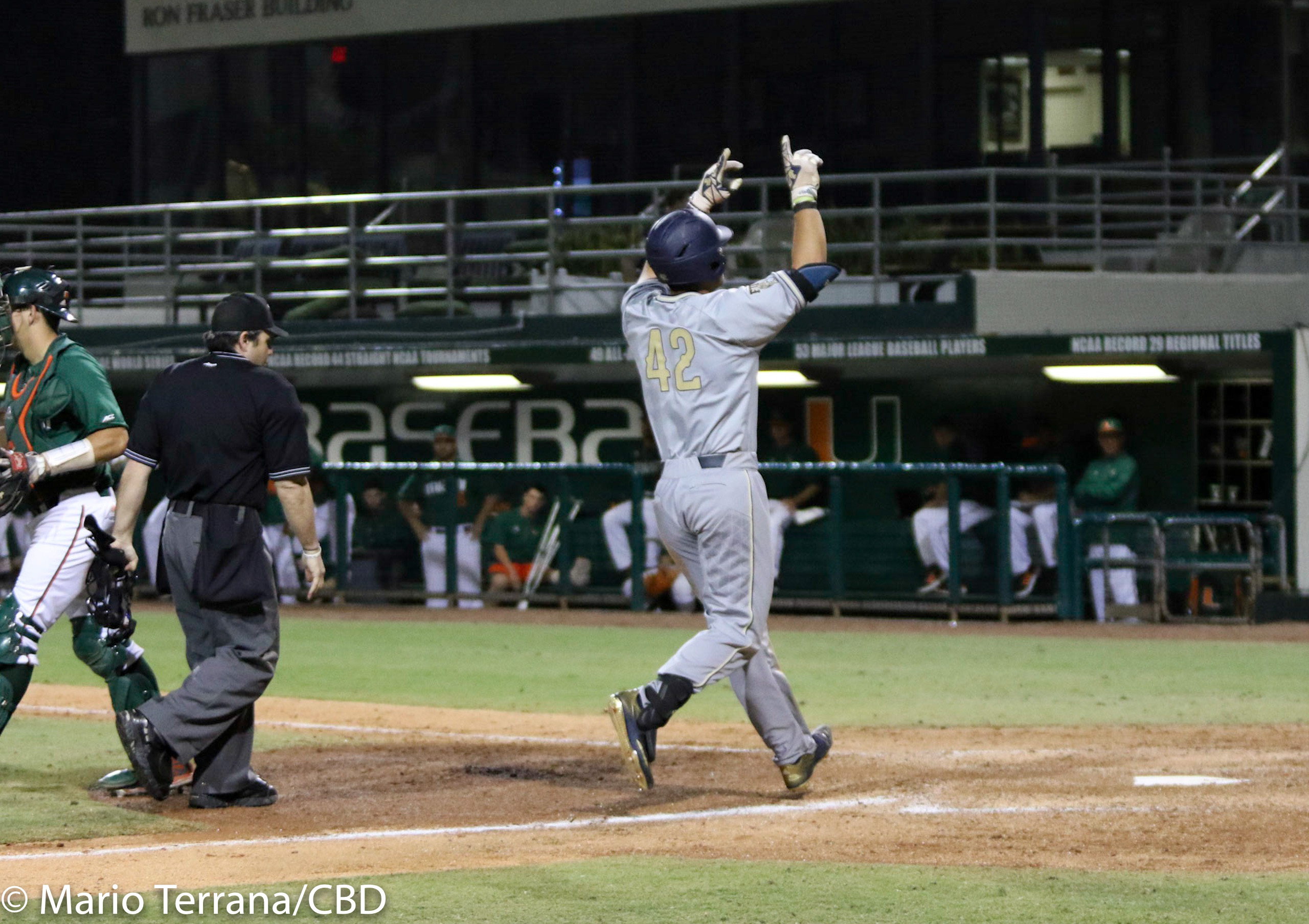Florida International defeated Miami (FL) 12-1 allowing only three hits behind seven strong innings from Robert Garcia while JC Escarra went 2-2 at the plate including a homer while driving in four runs. Here are some of the best pics from the game from Mario Terrana.