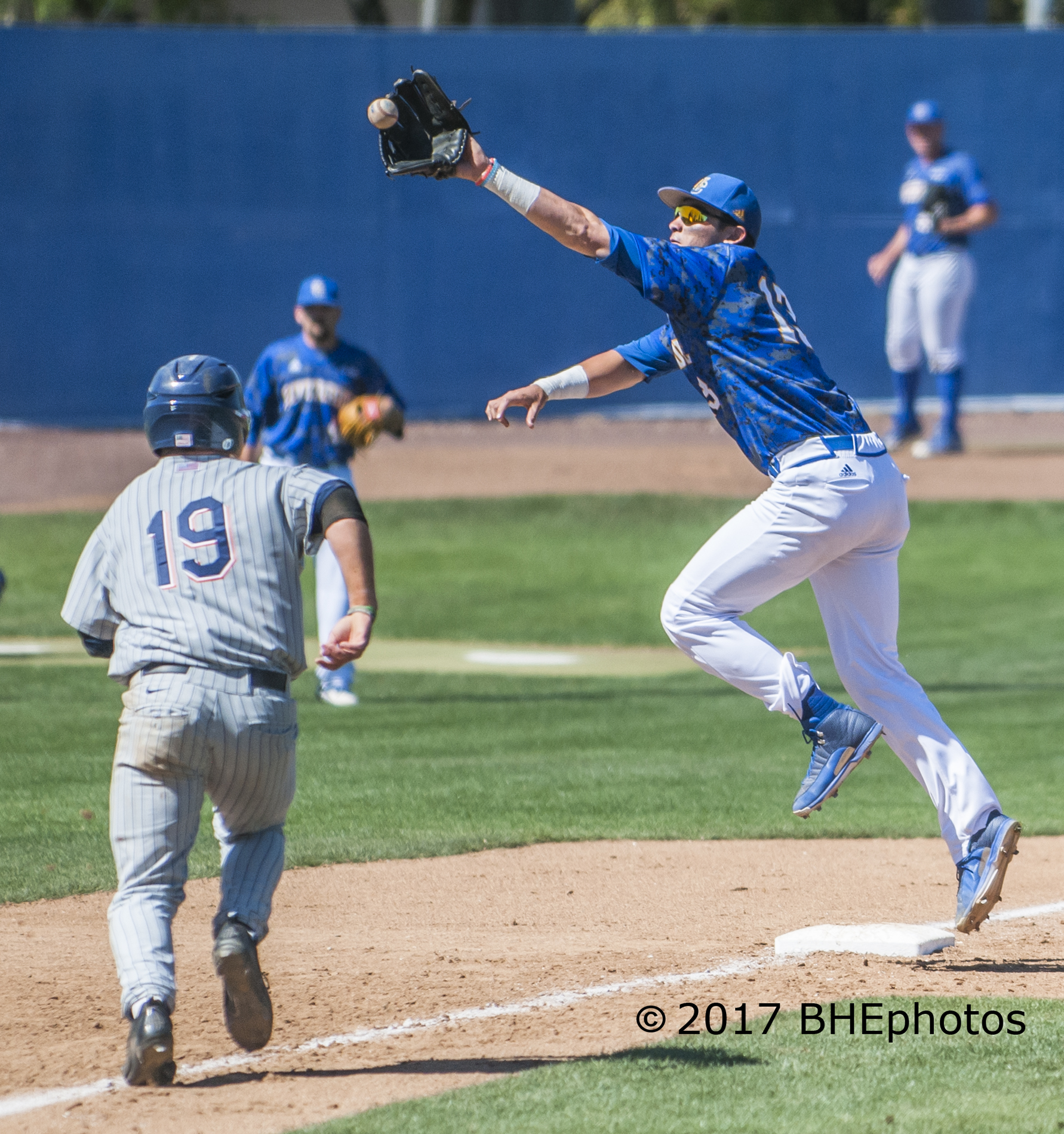 Taylor Bryant unsuccessfully dives for the ball down the line. The ball was called foul – Photo By David Cohen, BHEphotos