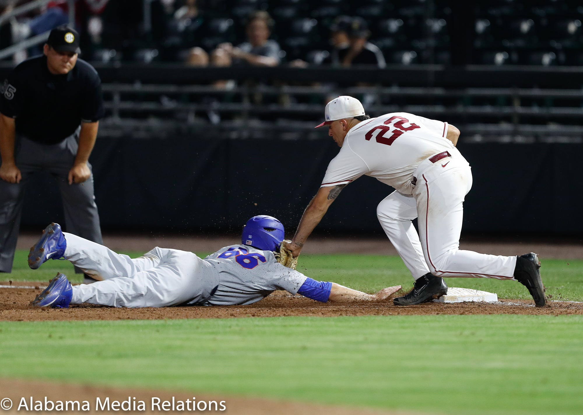 In the bottom of the ninth, Sam Finnerty reached on a one-out single, but Alabama was unable to bring him in, with pop-up and a strikeout ending the ballgame in favor of the Gators.