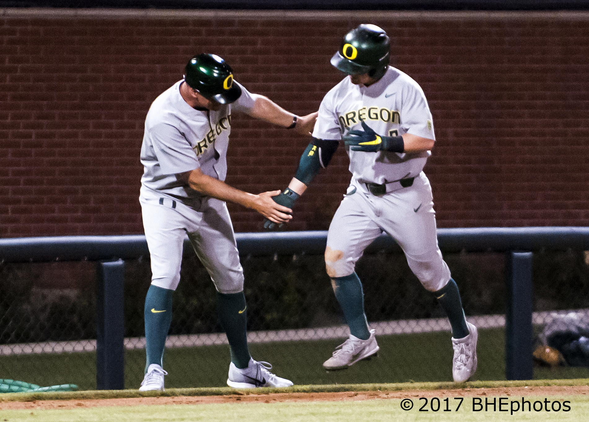 Morgan McCullough is met by Jay Uhlman as he rounds third after his 6th inning home run – Photo By David Cohen, BHEphotos – Photo By David Cohen, BHEphotos