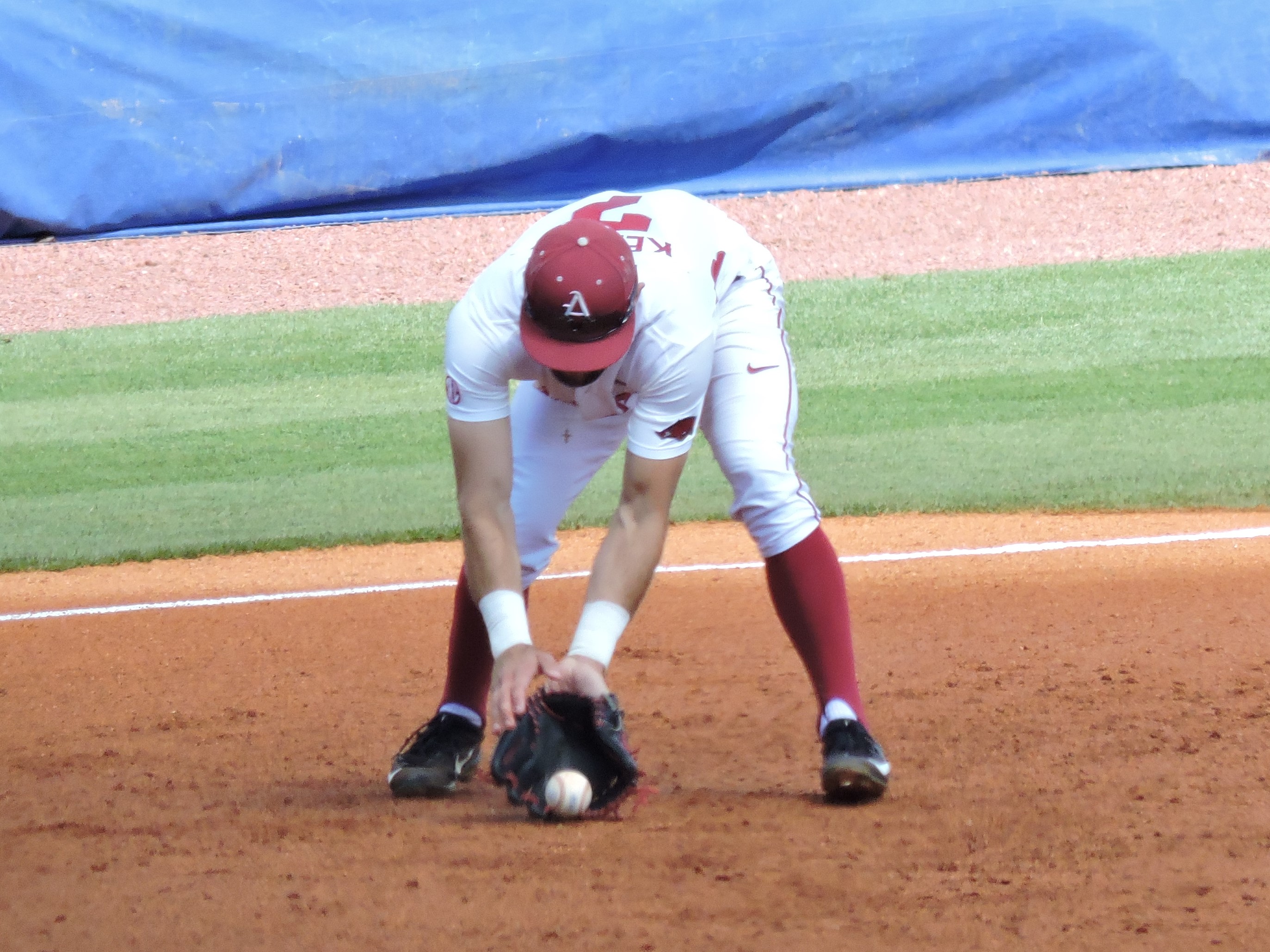 After waiting several days to play their first game, the Razorbacks came out swinging with a 2-run home run in the first inning from Luke Bonfield. They added another run in the second to make it 3-0.