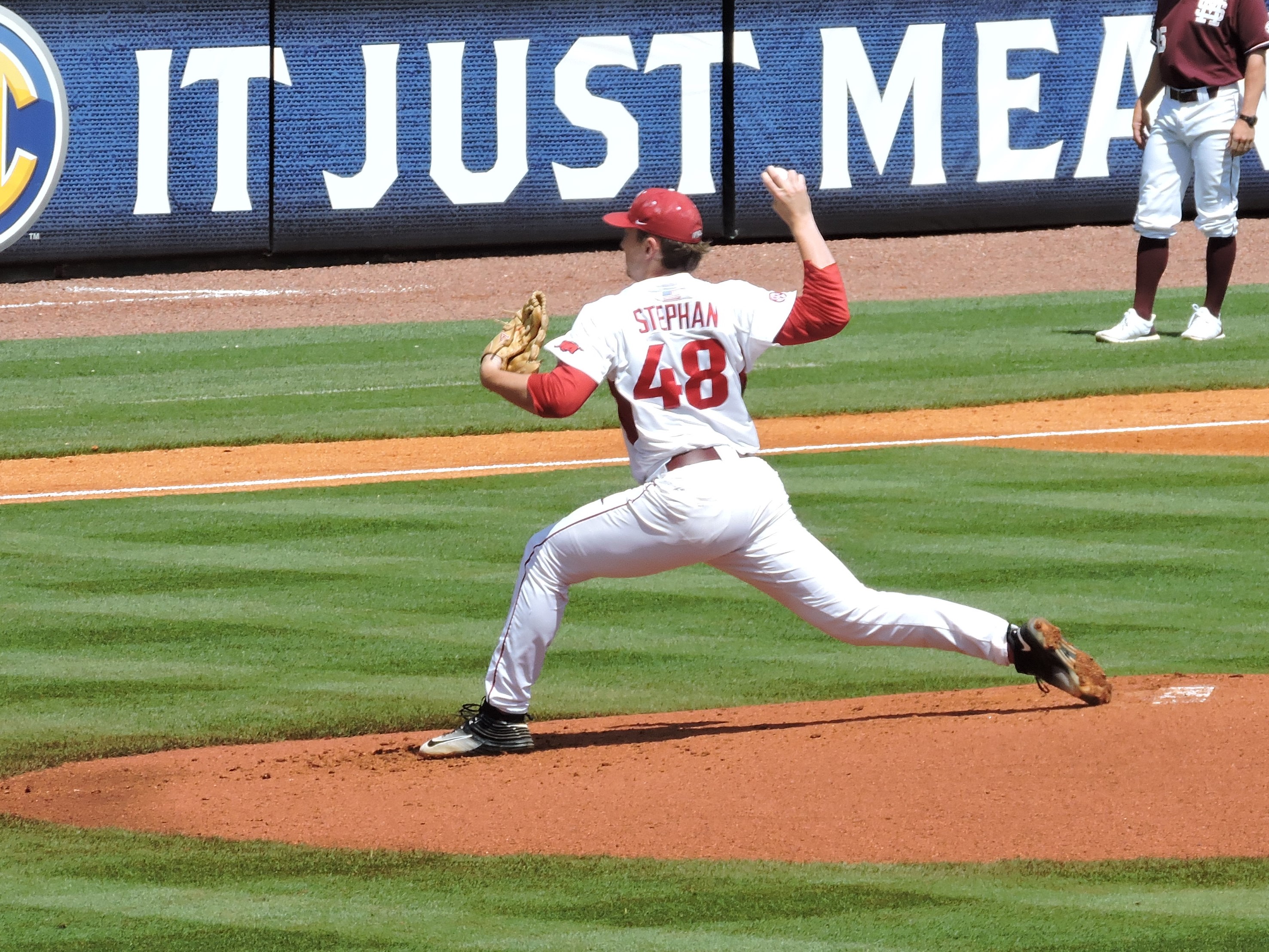Razorback starting pitcher Trevor Stephan worked in-and-out of trouble all day, but left the game with a 3-1 lead in the seventh. He tossed 6-plus innings allowing just the 1 run on 8 hits and 2 walks with 5 strikeouts. It was a very gutsy performance by the junior.
