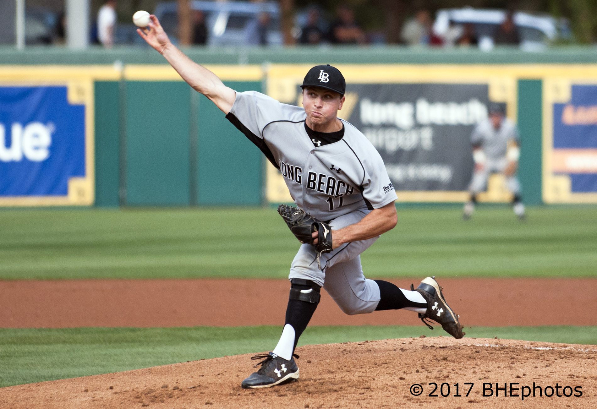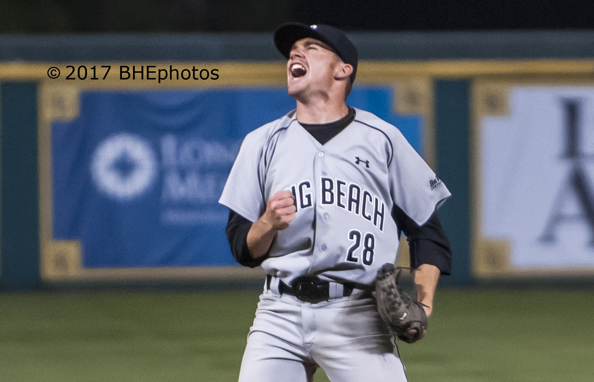 Josh Advocate reacts after striking out Cantu to end the game and give Long Beach another day – Photo By David Cohen, BHEphotos