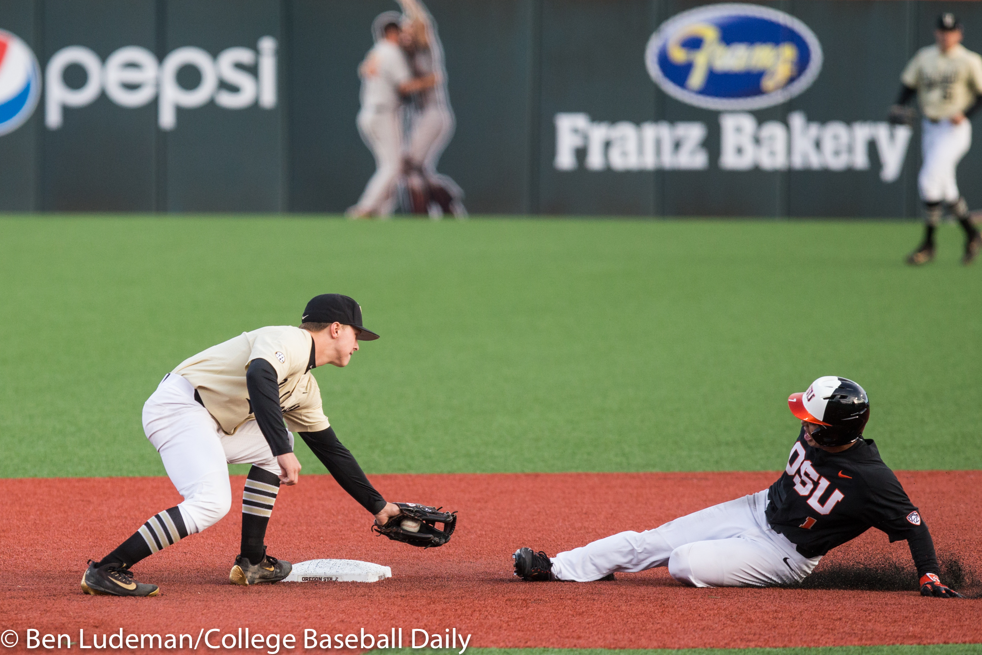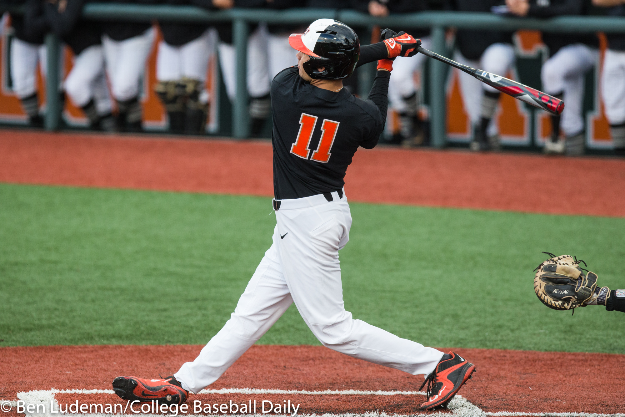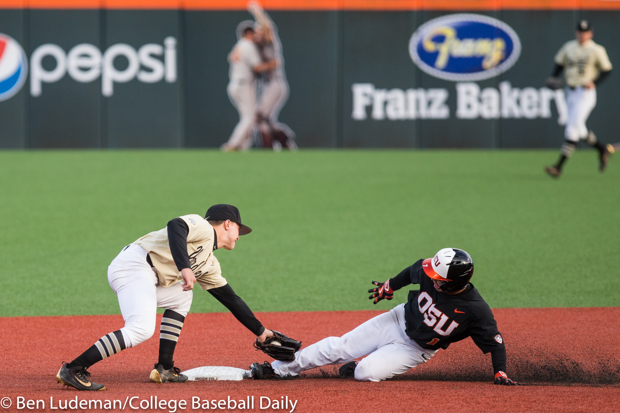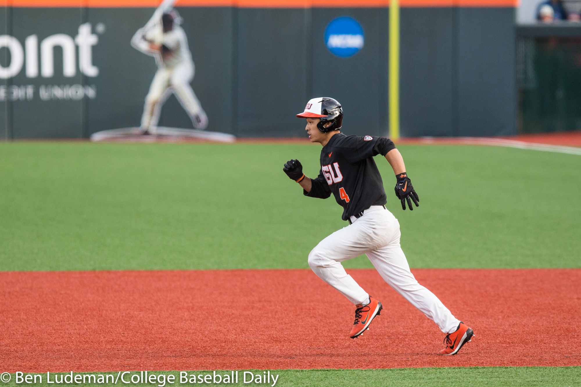 Corvallis, OR – JUNE 9: KJ Harrison (24) of the Oregon State Beavers celebrates a homerun during an 8-4 Oregon State Beavers victory over the Vanderbilt Commodores in an NCAA Championship Super Regional Playoff game on June 9, 2017 at Goss Stadium on the campus of Oregon State University in Corvallis, OR (Photo by Ben Ludeman)
