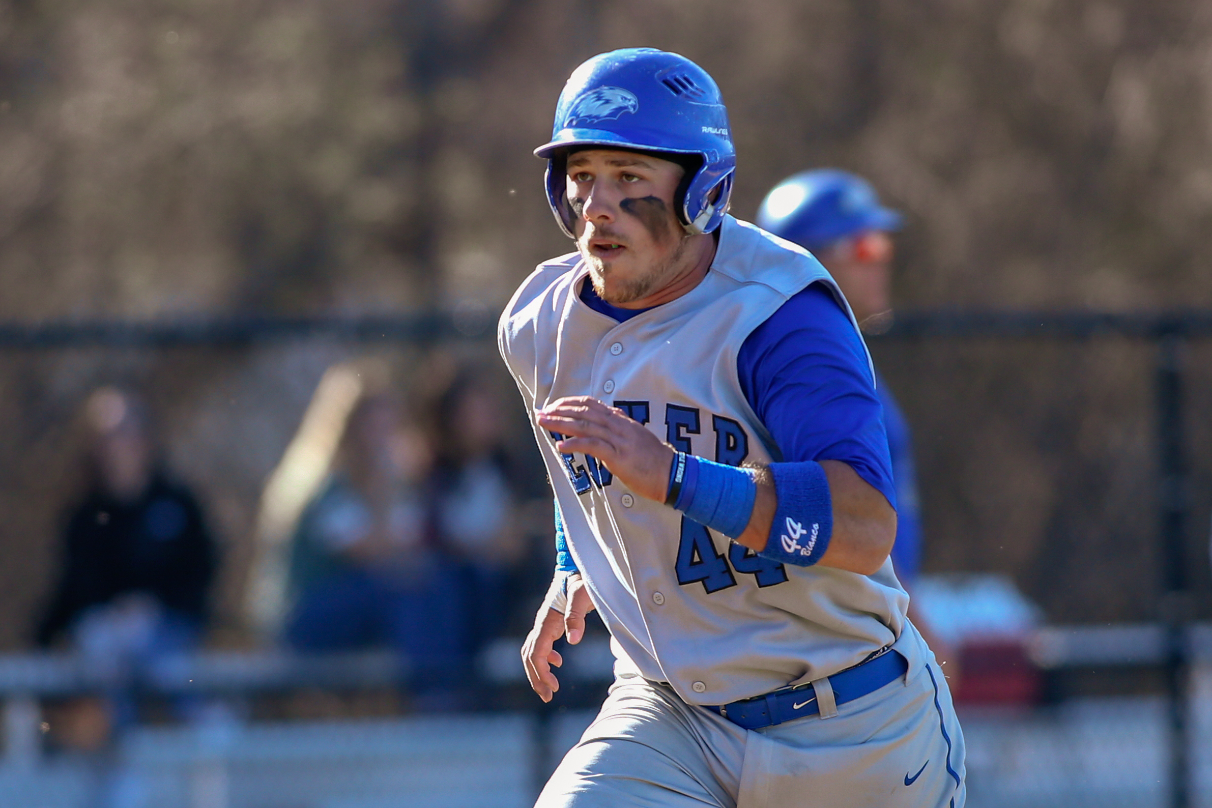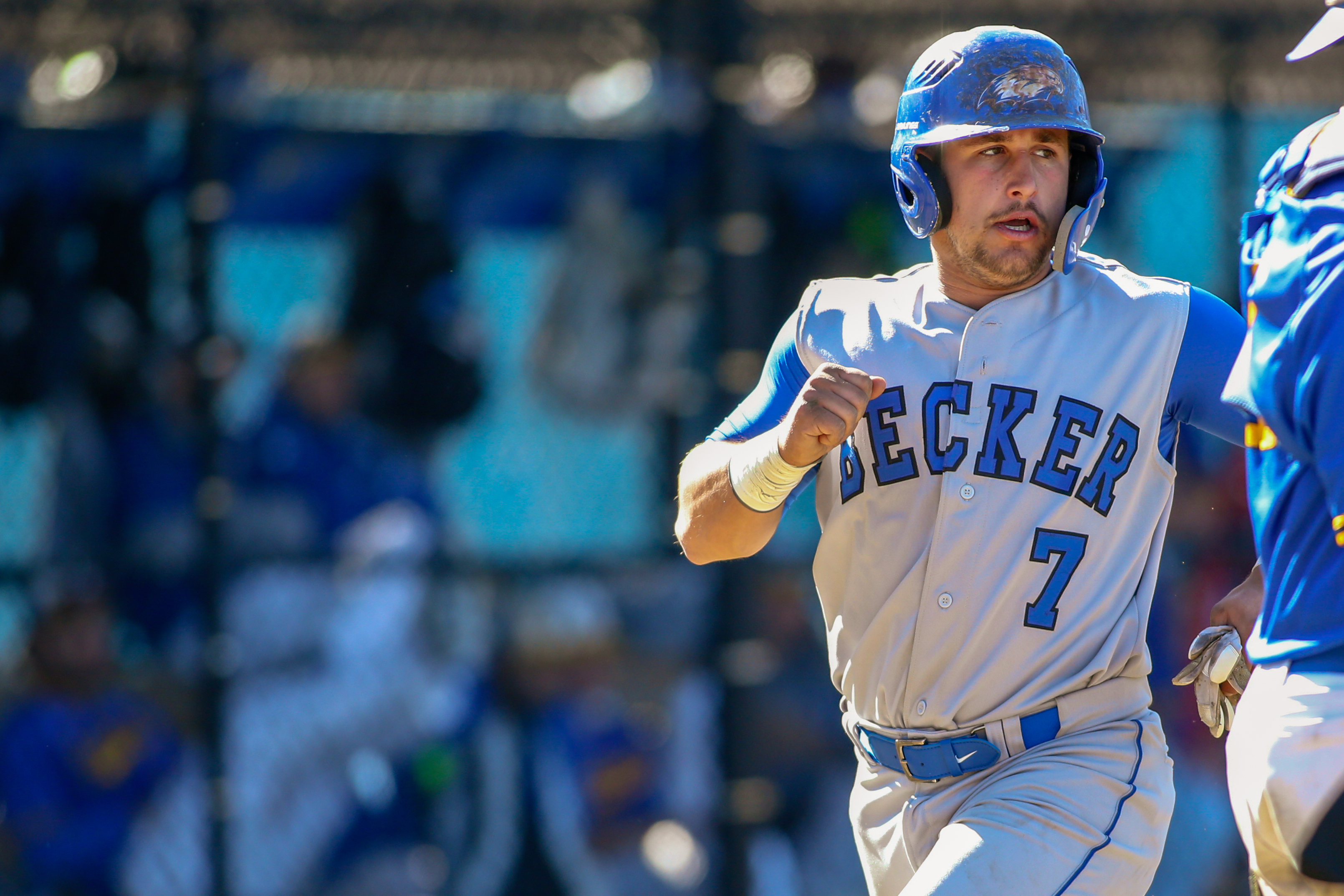 April 23,2018; Worcester, Massachusetts, United States; Becker College Hawks catcher Cameron Plank (7) Worcester State Lancers first baseman Chadd Richardson (10) during a nonconfernece matchup between Becker College and Worcester State at Kevin D. Lyons Diamond. Photo: © Brian Foley for Foley-Photography.com.
