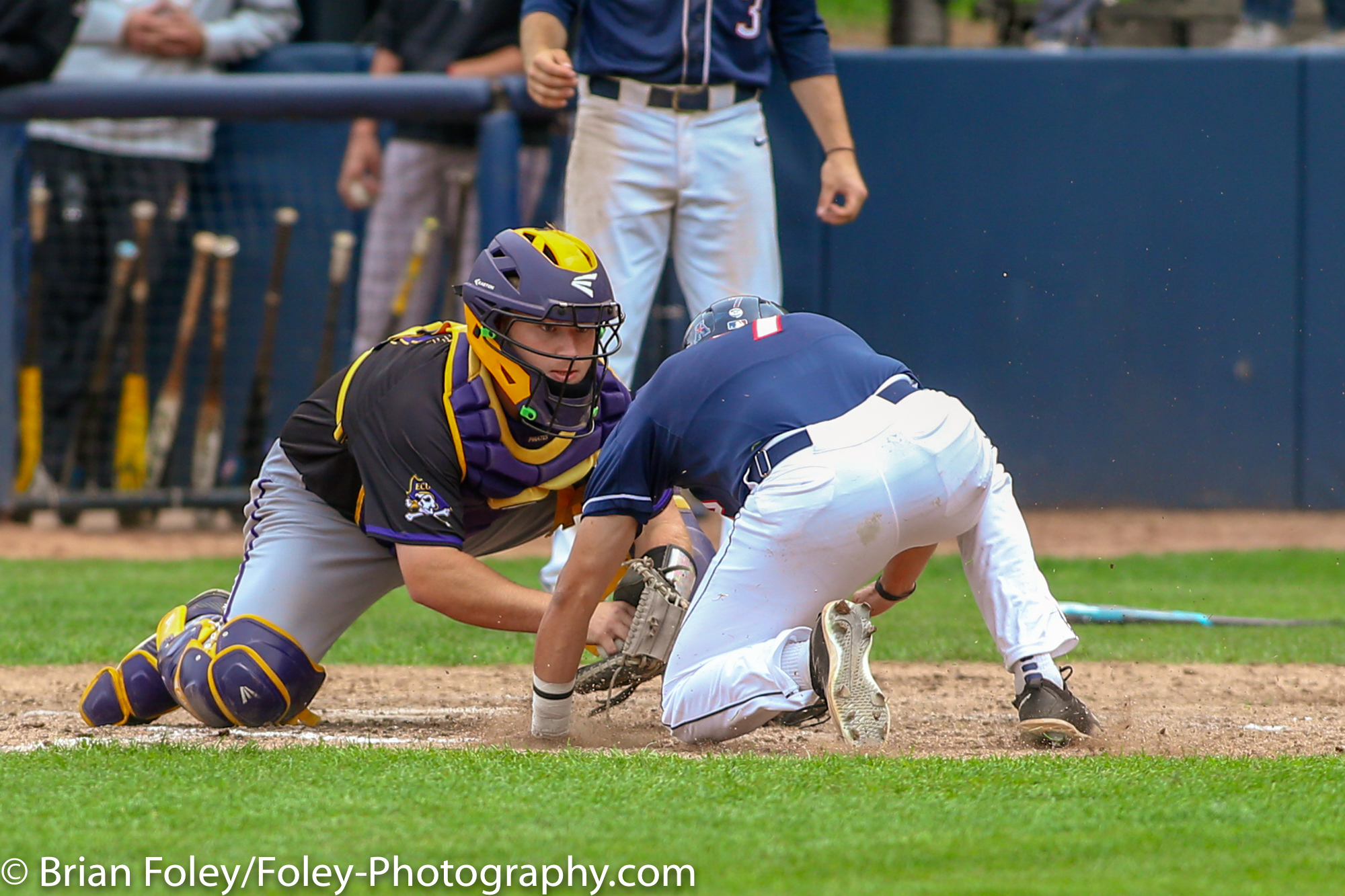 May 17,2018; Storrs, Connecticut, United States; Connecticut Huskies outfielder Isaac Feldstein (26) steals third base and avoids a tag from East Carolina Pirates infielder Connor Litton (25) during an American Athletic Conference matchup between East Carolina and UConn at J.O. Christian Field. Photo: © Brian Foley for Foley-Photography.com.